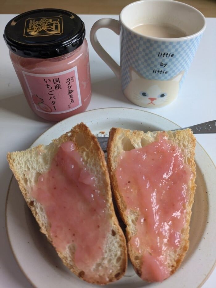 味は、いちごジャムとバターがミックスした感じで甘さは控えめです。ジャムとバターを2回塗る手間がかからないのが、いいですね。個人的には、バター感がもう少し強くても良かったような気もしました。