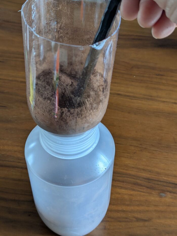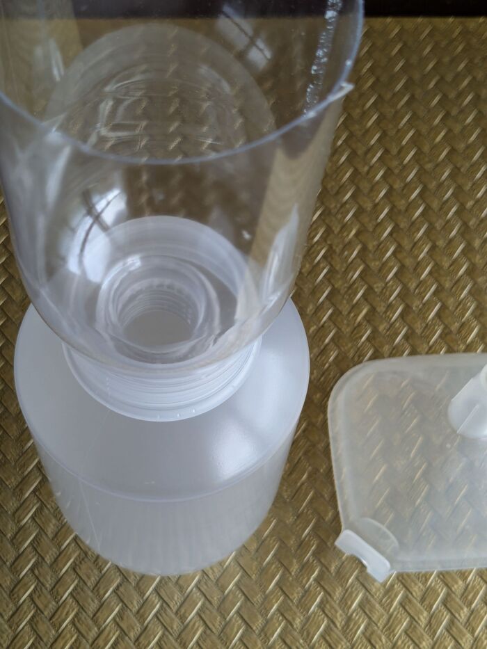じょうごが無いお家はペットボトルを切って代用しましょう!ペットボトルを洗って乾かしたらカッターやハサミで切ればOKです。オリゴ糖の口が広いので、あっという間に入れ替えれて便利です〜。切り口が危ないので気をつけて下さいね。