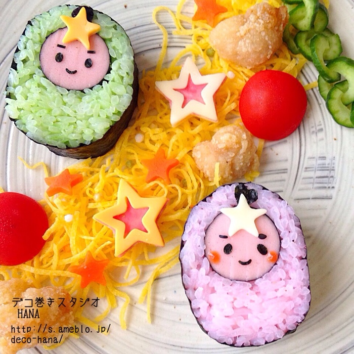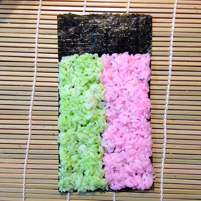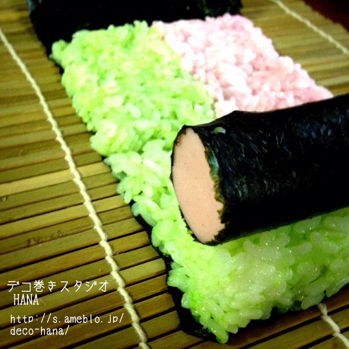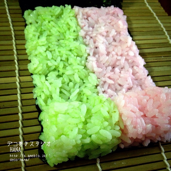 酢めしは今回、ピンクとみどりのでんぶで味を付けましたが、お好みでデコふりやその他の食材でいろいろアレンジしてくださいね♫