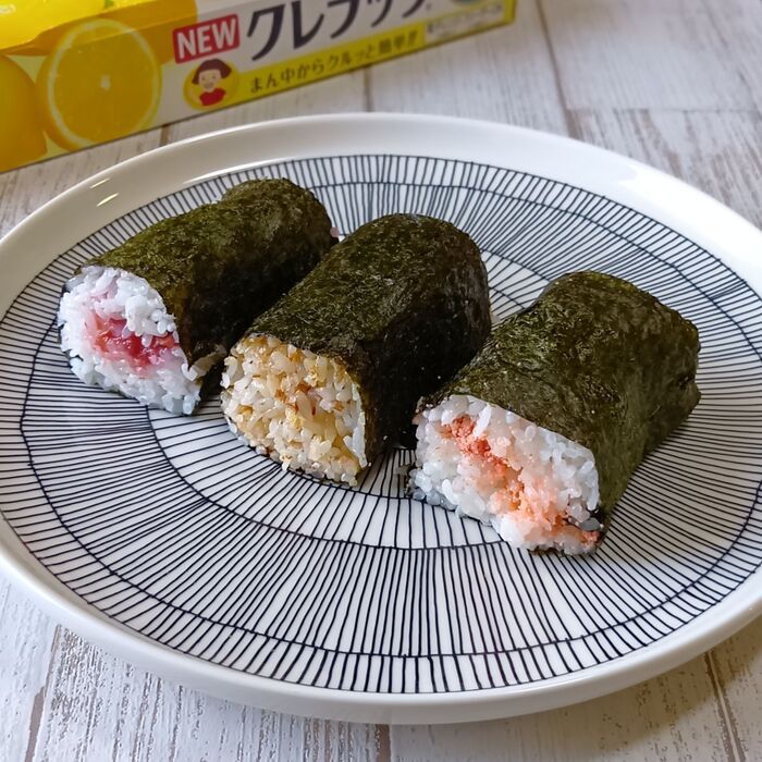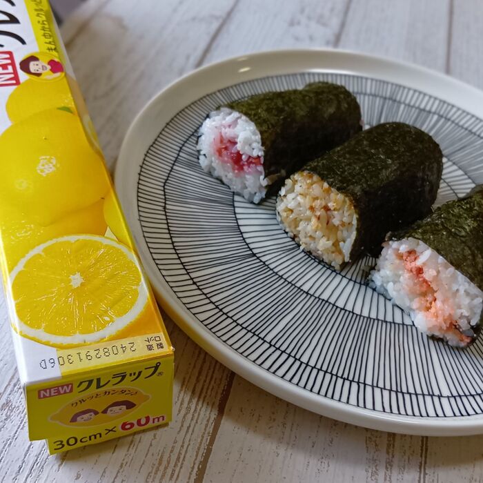 ⑨ 梅干しと同様に、たらこ味のおにぎりも作ります。