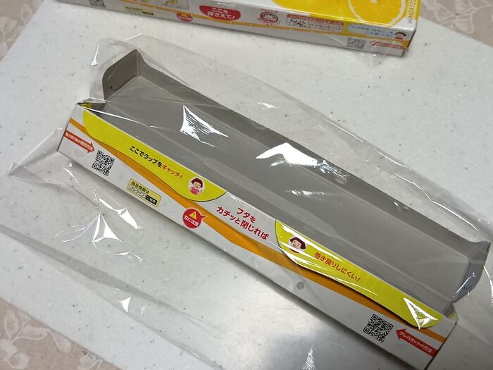 ② ラップの空き箱に、少し大きめにカットしたラップを敷いておく。