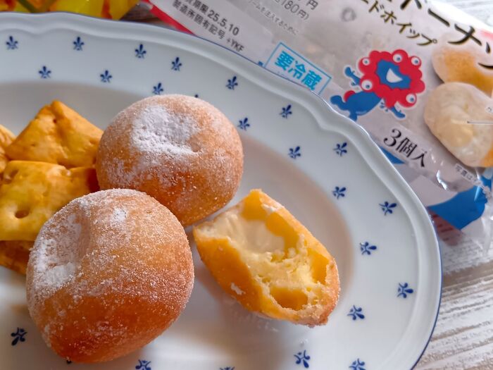 中身を開けてみると…コロンと丸くて、見るからにおいしそうなシュークリーム風の生ドーナツが登場!