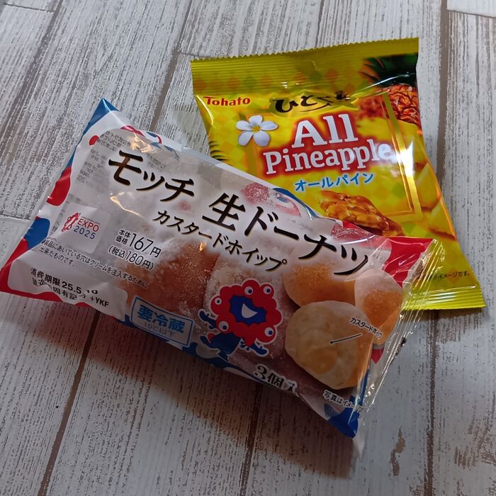ふわっとやわらかい生ドーナツに、パインの爽やかな風味がふんわり重なって、なかなかいい感じの組み合わせ!