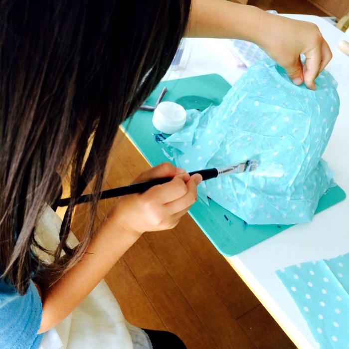 満遍なく金魚鉢に塗り、好きなペーパーを貼ります。