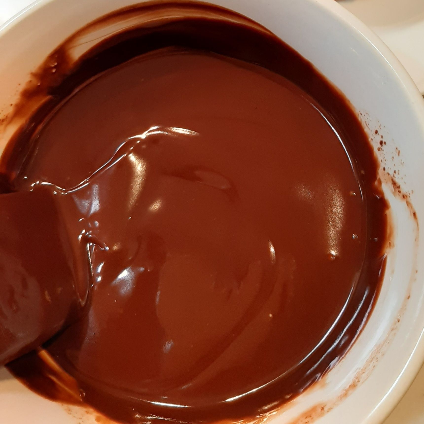 コーティング用チョコと生クリームを合わせてレンジ600Wで1分~(沸騰しないくらい)加熱して、少しおいてから混ぜる。(模様を描くために少しとっておく:セリアのアイシング用絞り袋を使いました!)