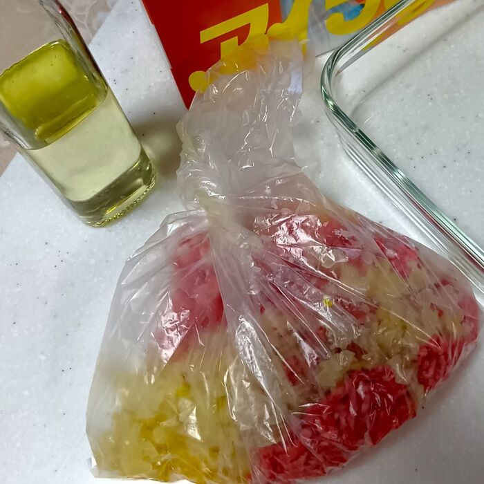 •アイラップのビニール袋を使用して、材料を揉みこんで作るので、洗い物も少ないです。