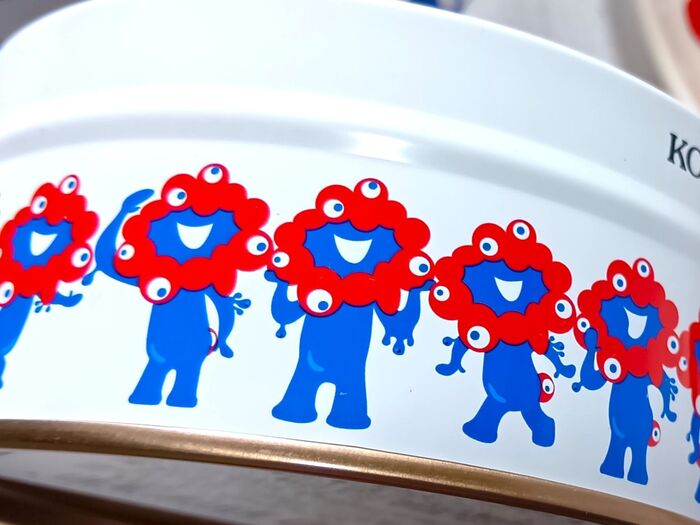 蓋以外にも、エンボス加工はないんですが、色々なポーズをするミャクミャクの姿も描かれていて、デザインがとにかく素敵!