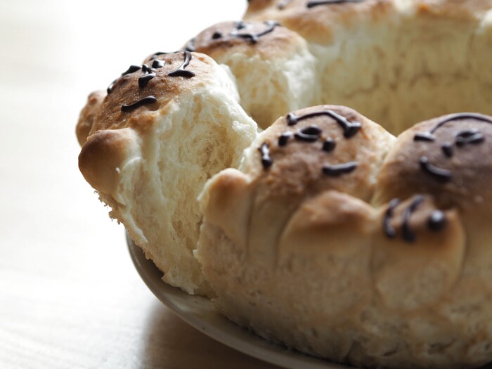 まず出来た瞬間に「可愛い〜」と思わず叫んでしまうほどで、顔を描くことで一気にパンへの愛着が湧きました。不揃いな顔もご愛嬌。本当にちぎって食べてしまうのがもったいないくらい!!
