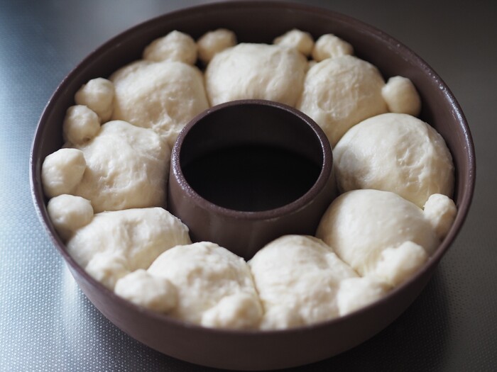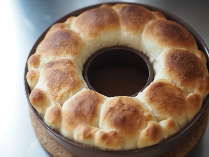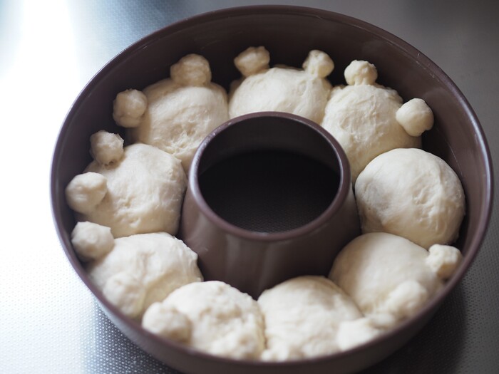 ふわふわモチモチのちぎりパンを作るためにはここがポイントになります。生地をつなげて焼くことで水分がほどよく残り、ふんわりしっとりした食感に仕上がるそう。