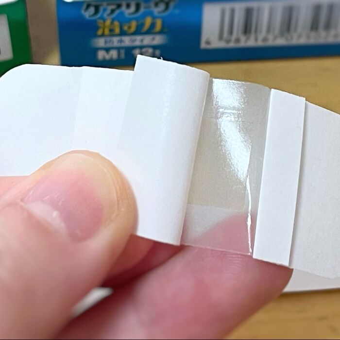 真ん中だけ剥がすことができるので、キズに直接貼れて良いです。