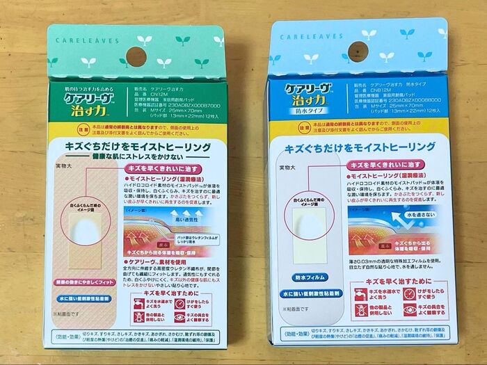 こちらが「ケアリーヴ治す力」右側が防水タイプです。
