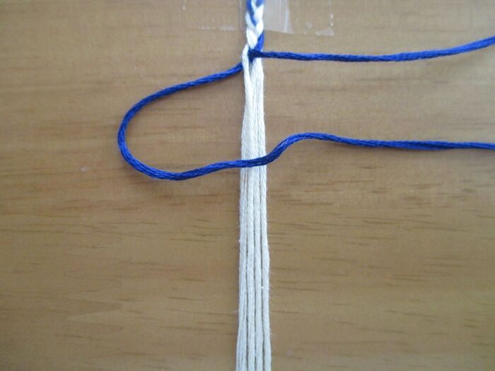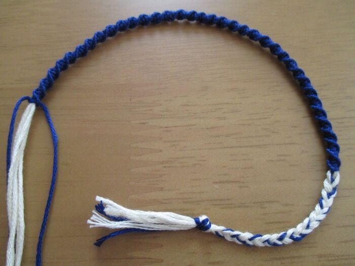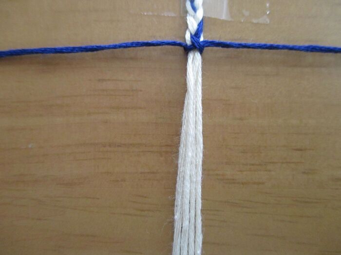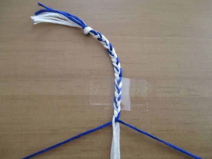 三つ編みを5cmしてから、マスキングテープなどで固定し直します。