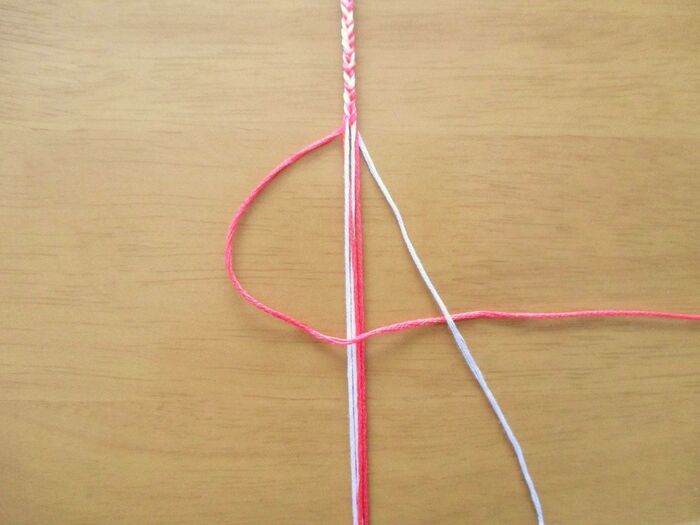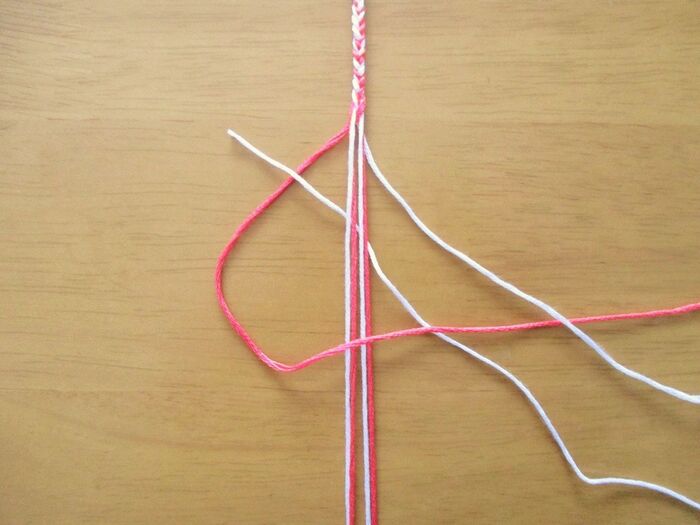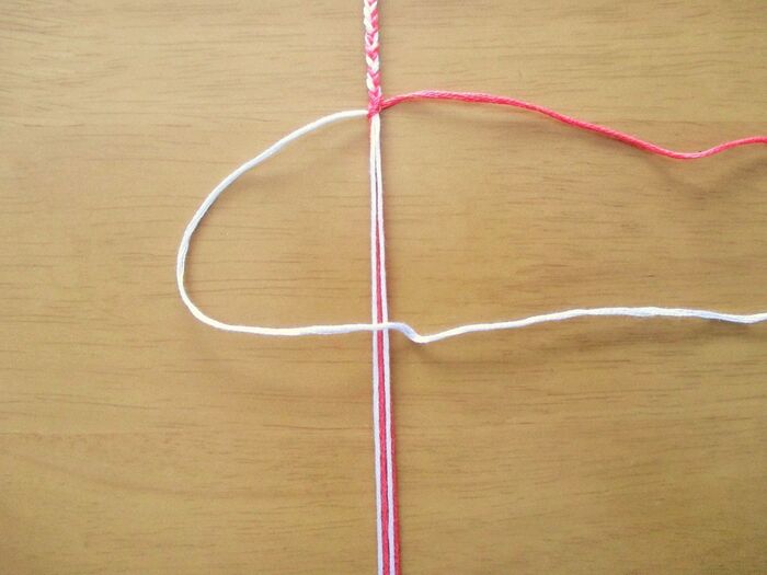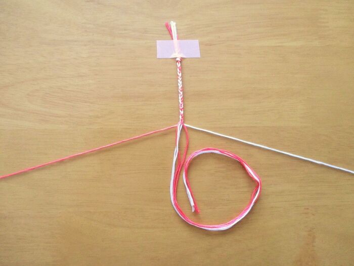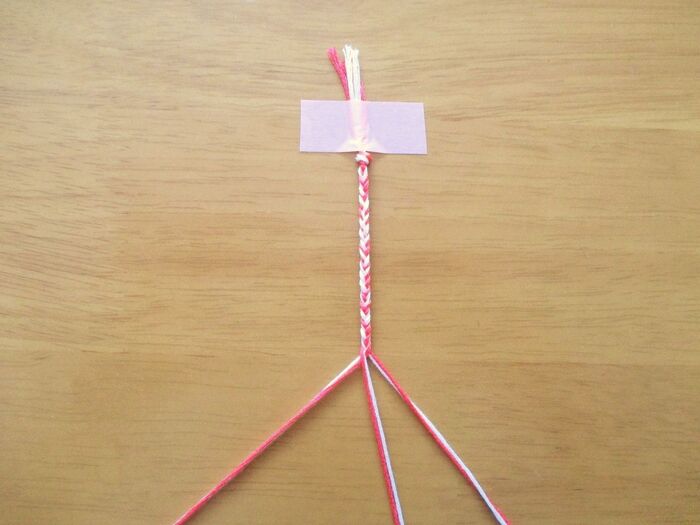 端から3cmくらいをひと結びして固定し、3束に分けます。