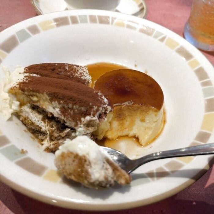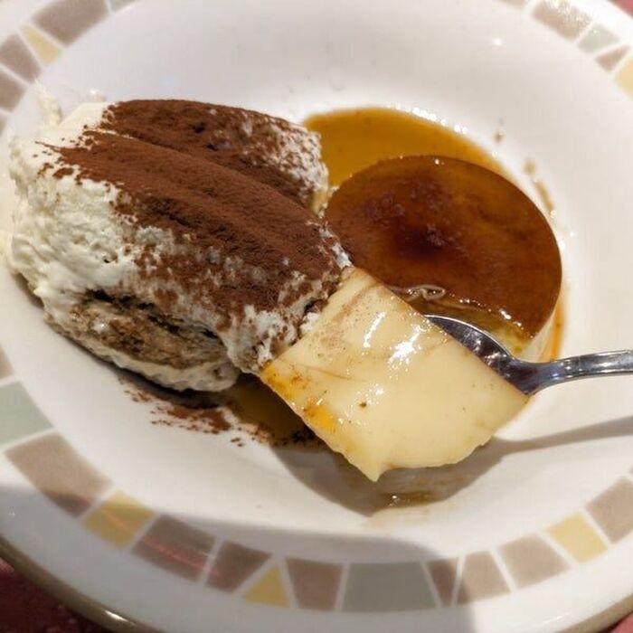 デザートに、『プリンとティラミスクラシコの盛合せ』500円(税込)を注文しました。