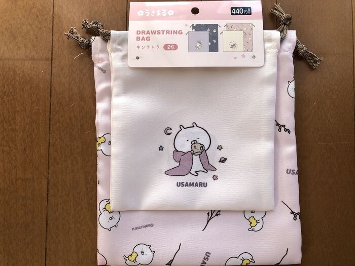 巾着はラス1でもう迷わずカゴに入れました。440円のお品でしたが、普段ロフトなどで売っている物と比べたらかなりのお手頃価格。
