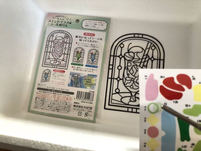 シールを台紙から外し、透明なシートにペタリと貼っていくだけです。