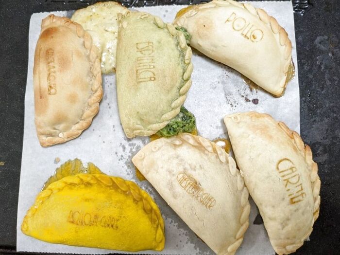 アルゼンチンのエンパナーダの定番「ひき肉オリーブ」、玉ねぎとパプリカの爽やかさをカレーがまとめた「カレーチキン」、チェダーチーズとベーコン、ひき肉が詰まった「チーズバーガー」など6種が入っています。