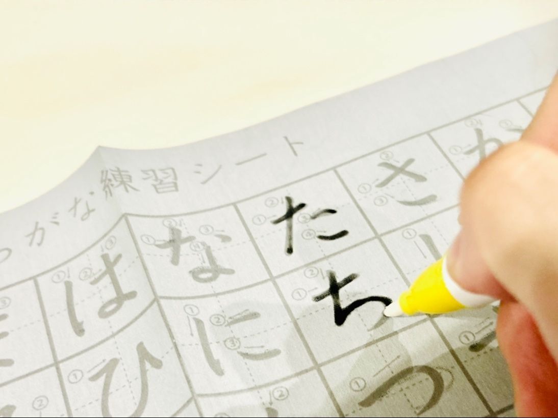 ペンの中に水を入れるとシートに文字が書け、ひらがなの練習ができるらしい。
