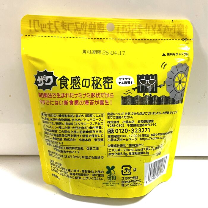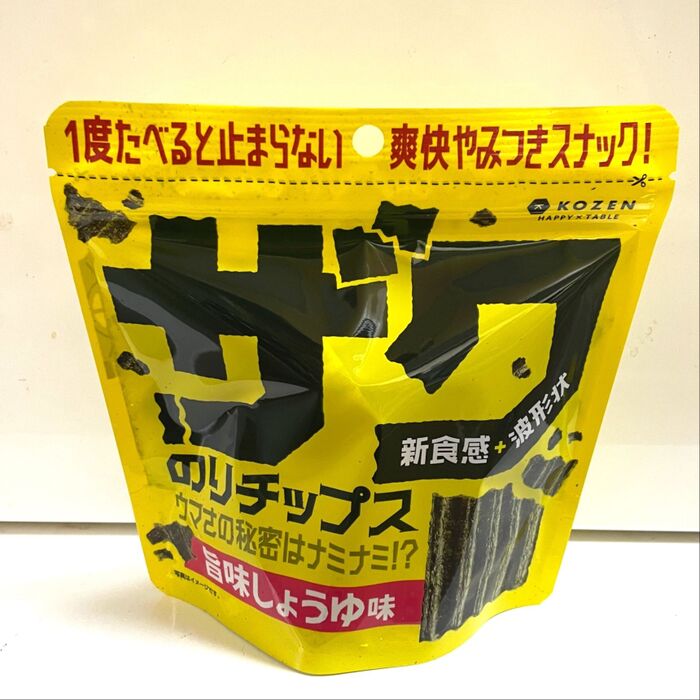 こちらが黄色に黒のロゴが目立つ「ザクのりチップス」です。