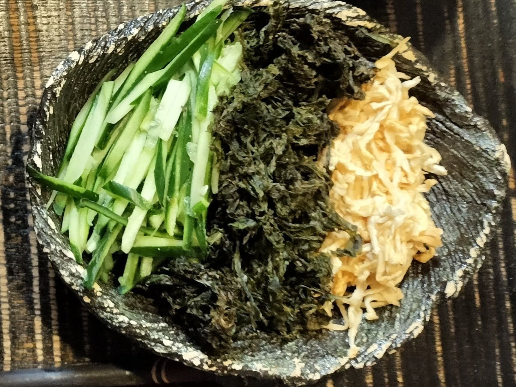 ピリ辛甘酢!焼き海苔とキュウリと切り干し大根の酢の物!