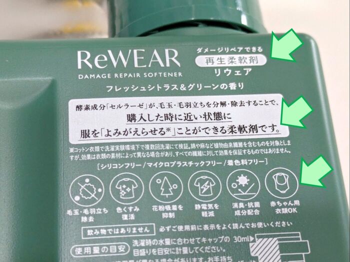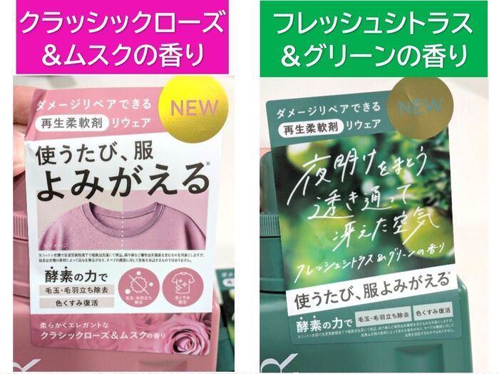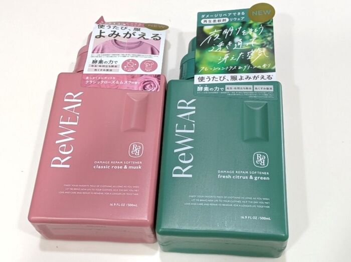 洗うたびに服がよみがえる柔軟剤=再生柔軟剤「ReWEAR(リウェア)」。