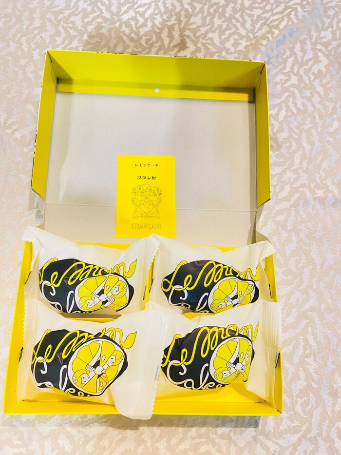 素敵なお箱を開けると、レモン柄のパッケージに個包装に入っています。4個入りを購入しました。