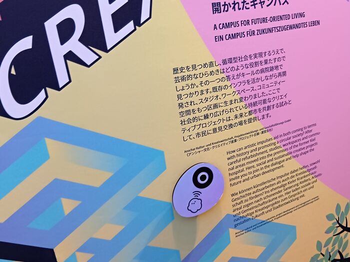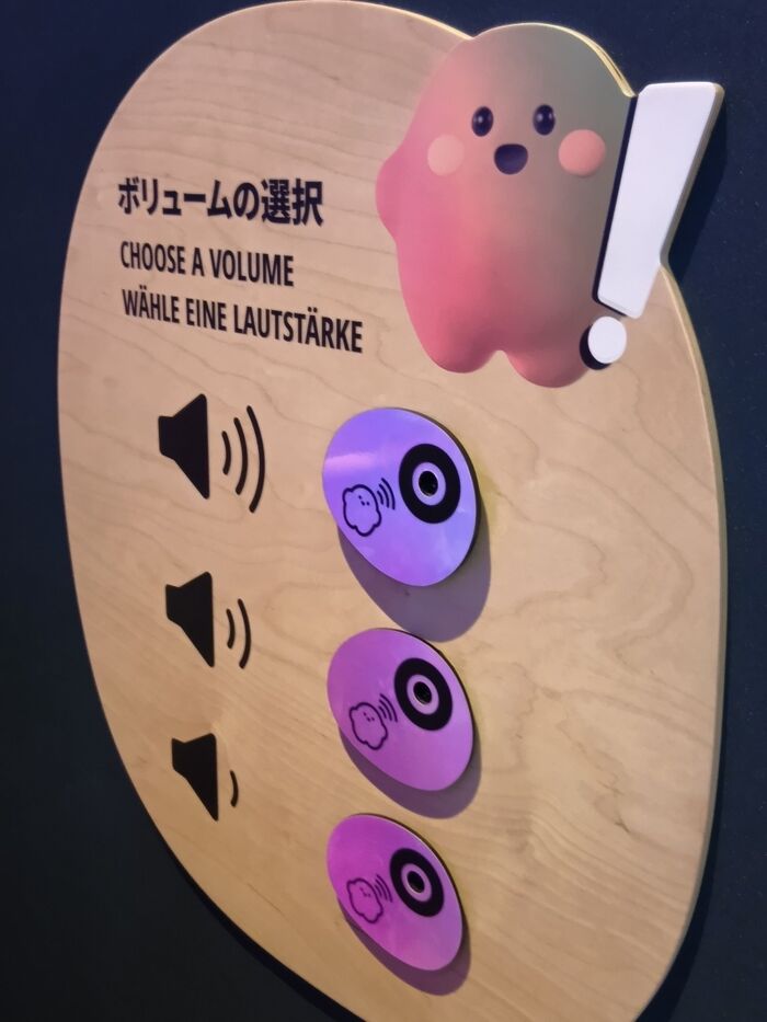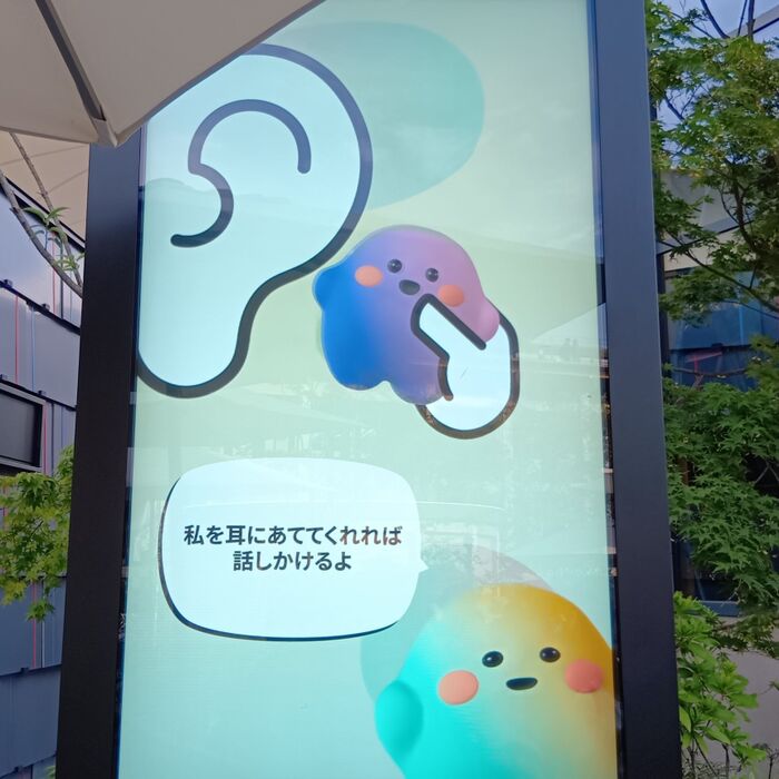 壁に埋め込まれた部分にサーキュラーちゃんを押し当てると、それぞれの箇所で伝えたいことを教えてくれるんです!