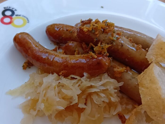 ドイツ風味の焼ソーセージ3本に、ザワークラウトとパンがセットになって2,400円!