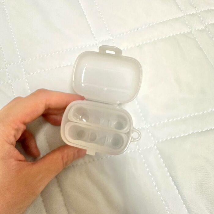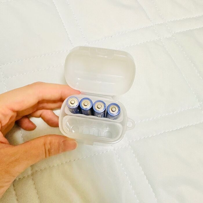 ケースの穴は前後に分かれているので、使い終わって捨てるまでの間の電池を、どちらかに置いておいてもいいかも。