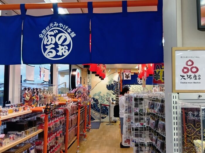 ミャクミャク関連のお土産ではないのですが、グッズや地域の特産品など、いろいろな商品が揃っていて、大混雑日のお土産選びにも活用できるかも。