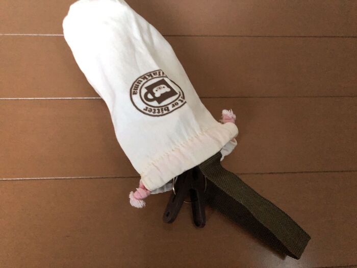 そこでペットボトルカバーに入れてみると、折りたたみ傘を入れても袋には余裕があります。