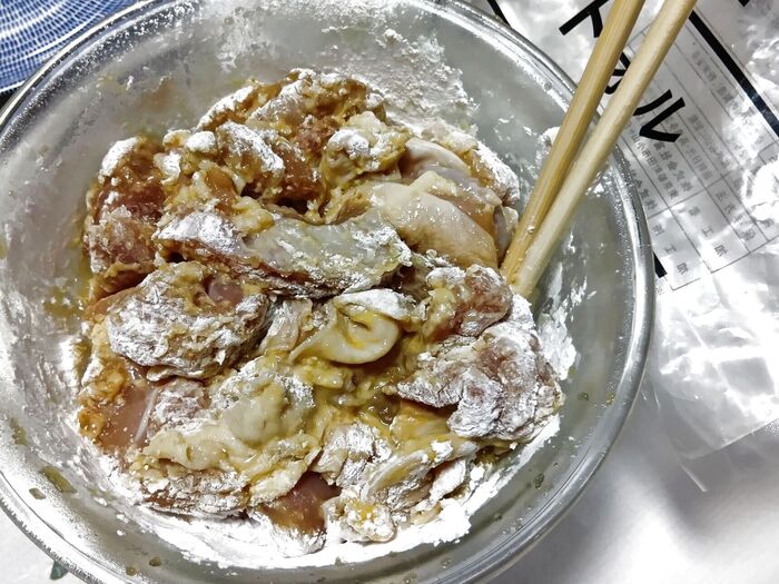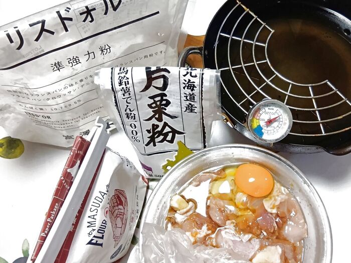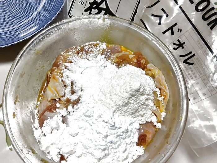 余った強力粉と片栗粉をブレンドしてから揚げに使います。