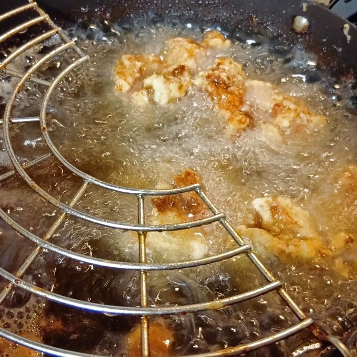 カリカリ感を出すのに最適。揚げた時に表面がパリッと仕上がります。