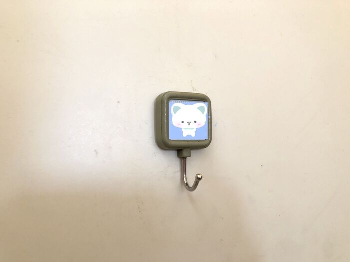 わが家の玄関ドアは、磁石がつくタイプなので、ドアスコープを覆うように室内から「強力磁石付きのフック」をつけます。