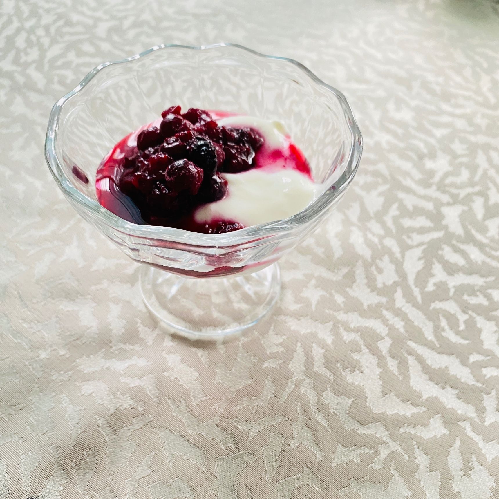③ヨーグルトは、自家製ブルーベリーと一緒にして、毎朝食べています。