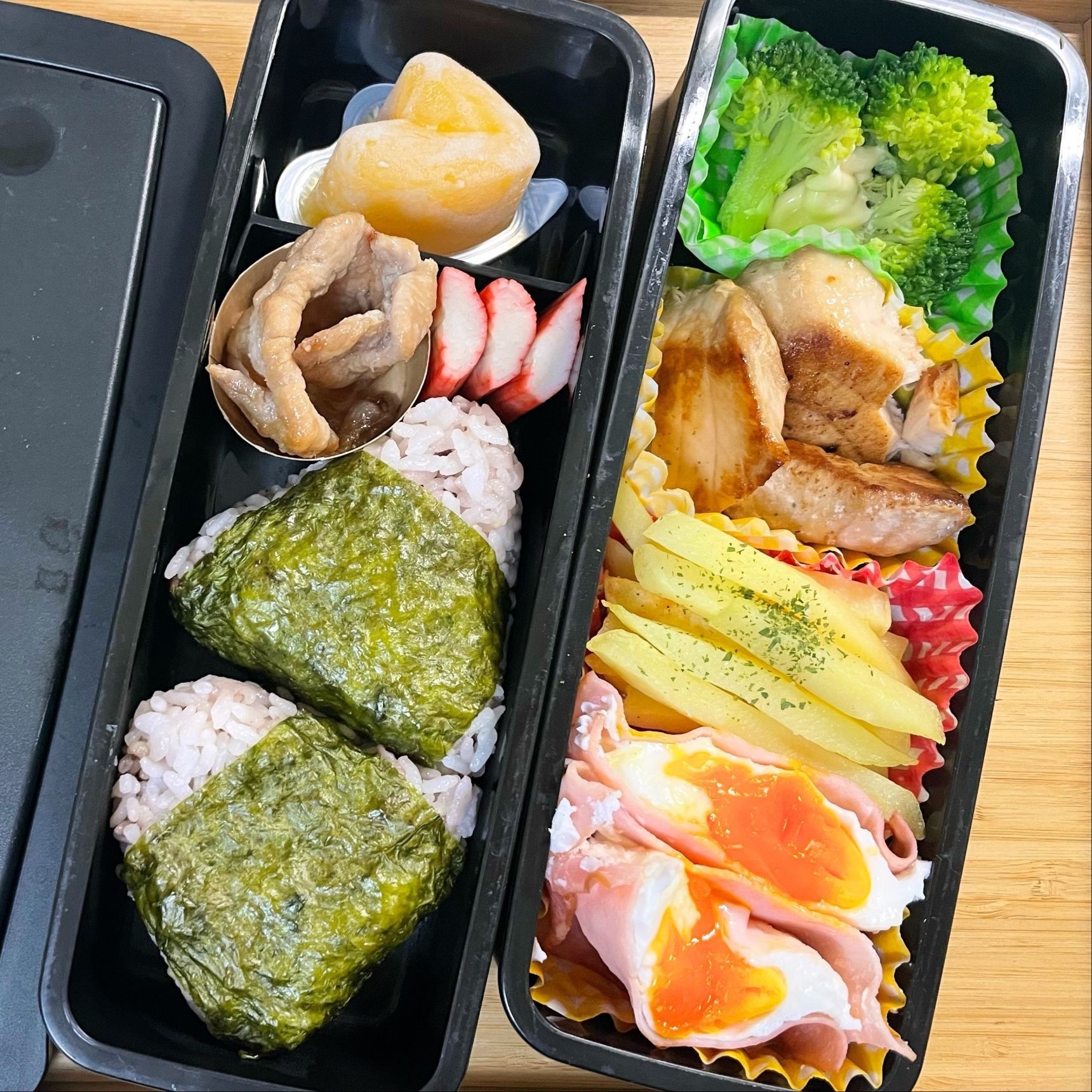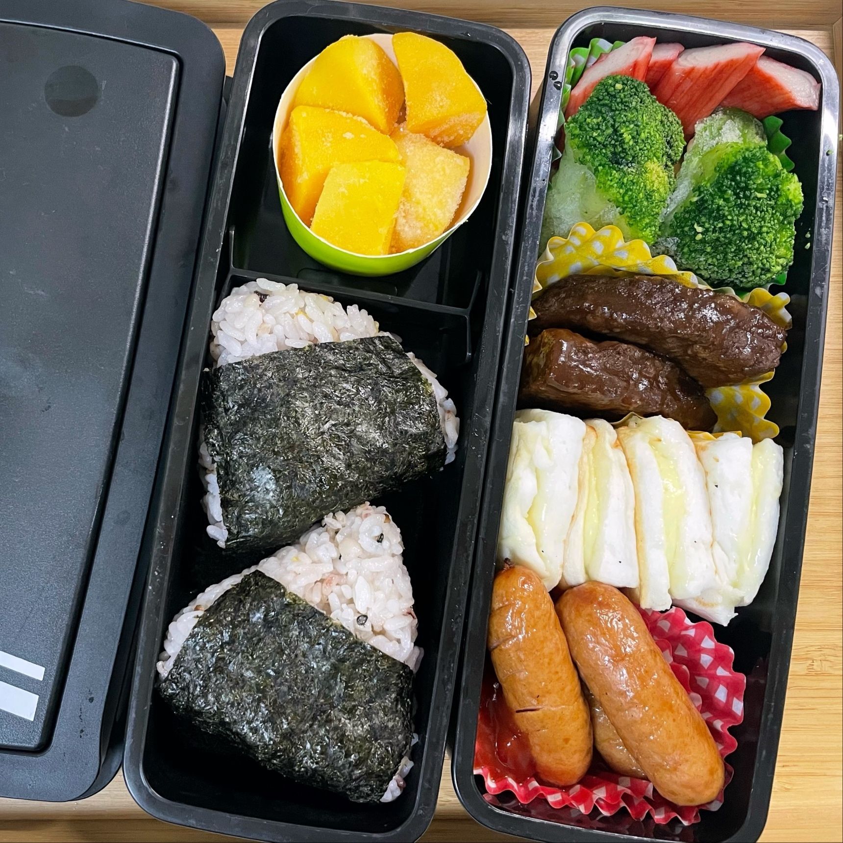 おにぎりにして、ハンバーグと試してみました。