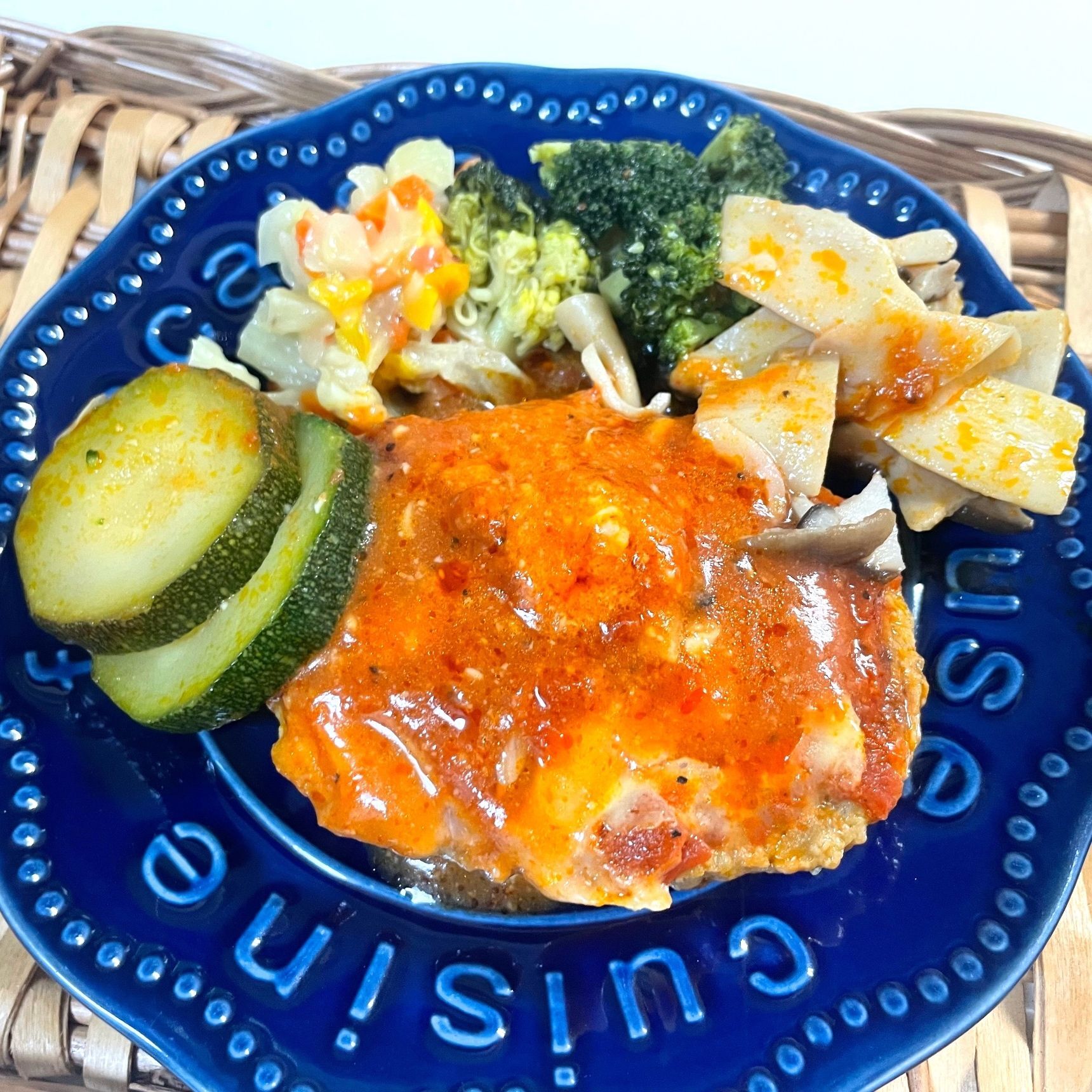 まずは、「ナポリの風香る チーズをまとったトマトチキン」から。