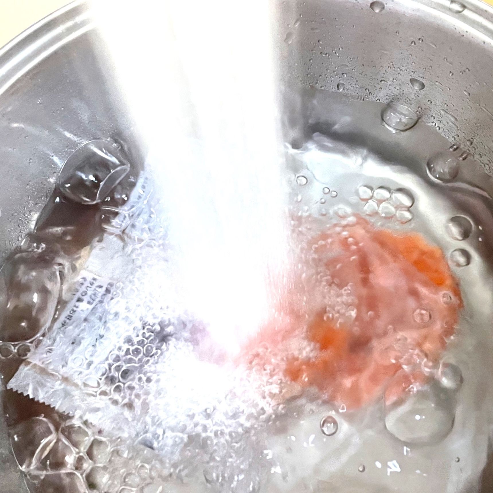内袋のまま水をはったボウルに約7分で解凍完了。