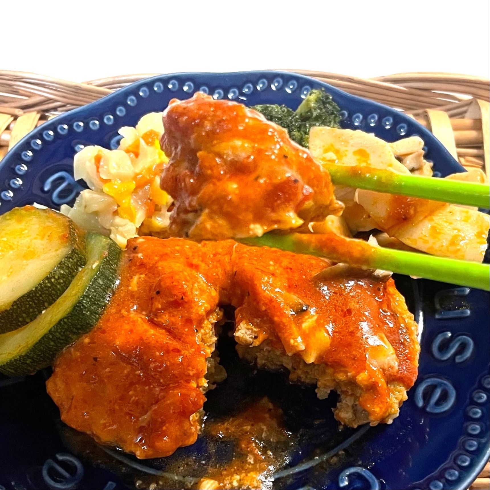 トマトとチーズのソースが間違いないおいしさのハンバーグ!