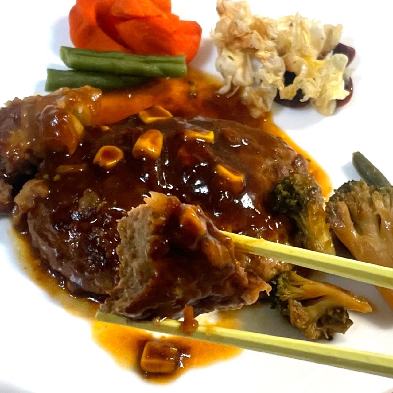 デミソースは万人受けするお味ですし、お肉の方も食べ応えがあって満足感バツグン。