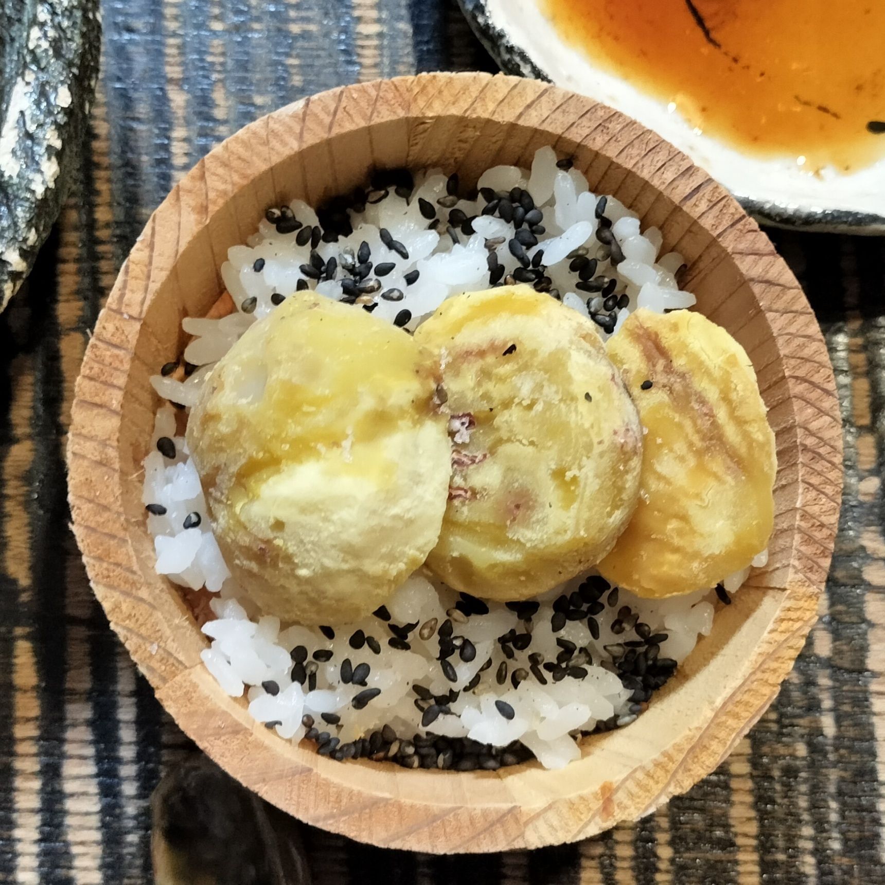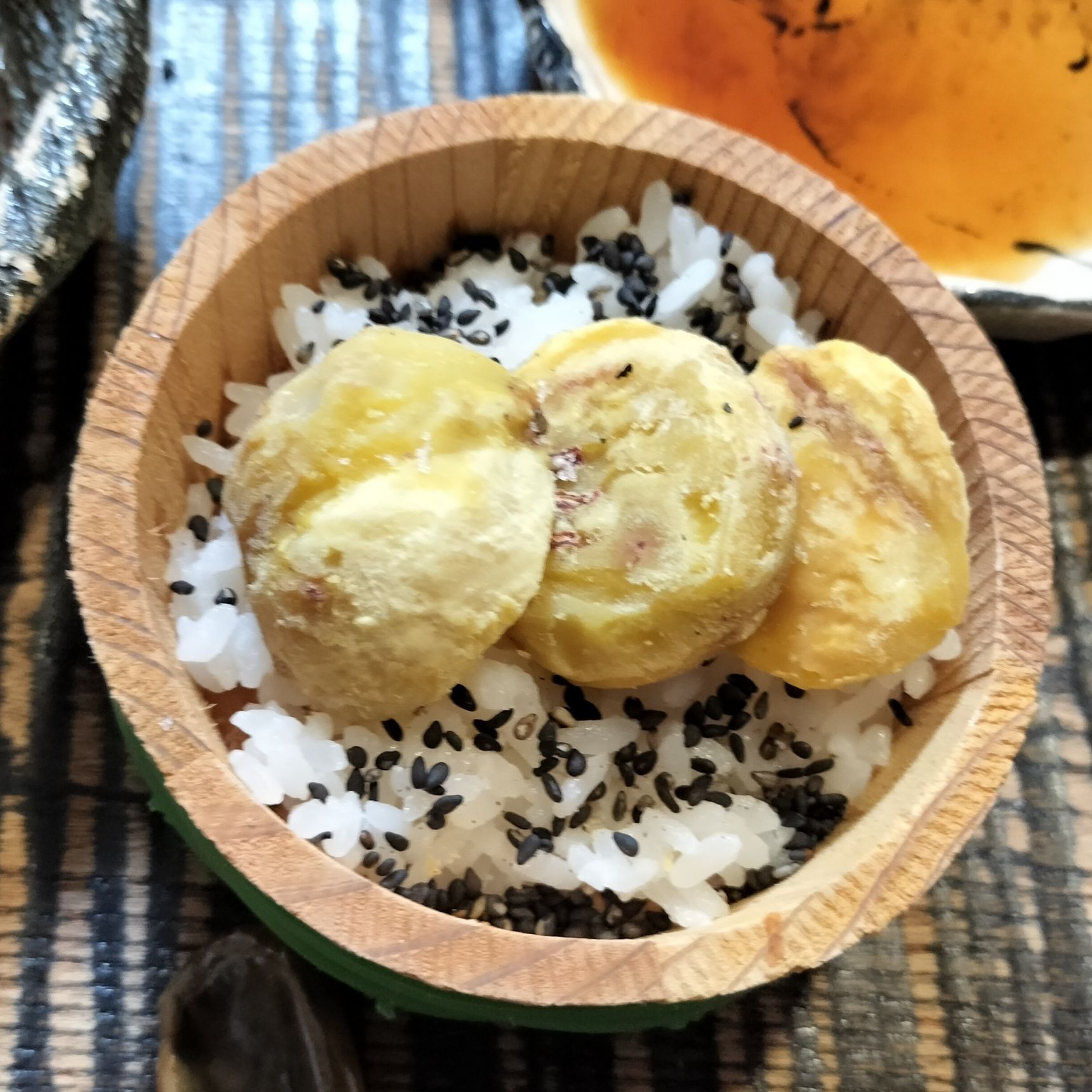 時間が経つと、(樽と塩の効果で)白飯の余分な水分が飛び、塩味で甘味が引き立ち、もちもちとした食感や甘みを味わえます!