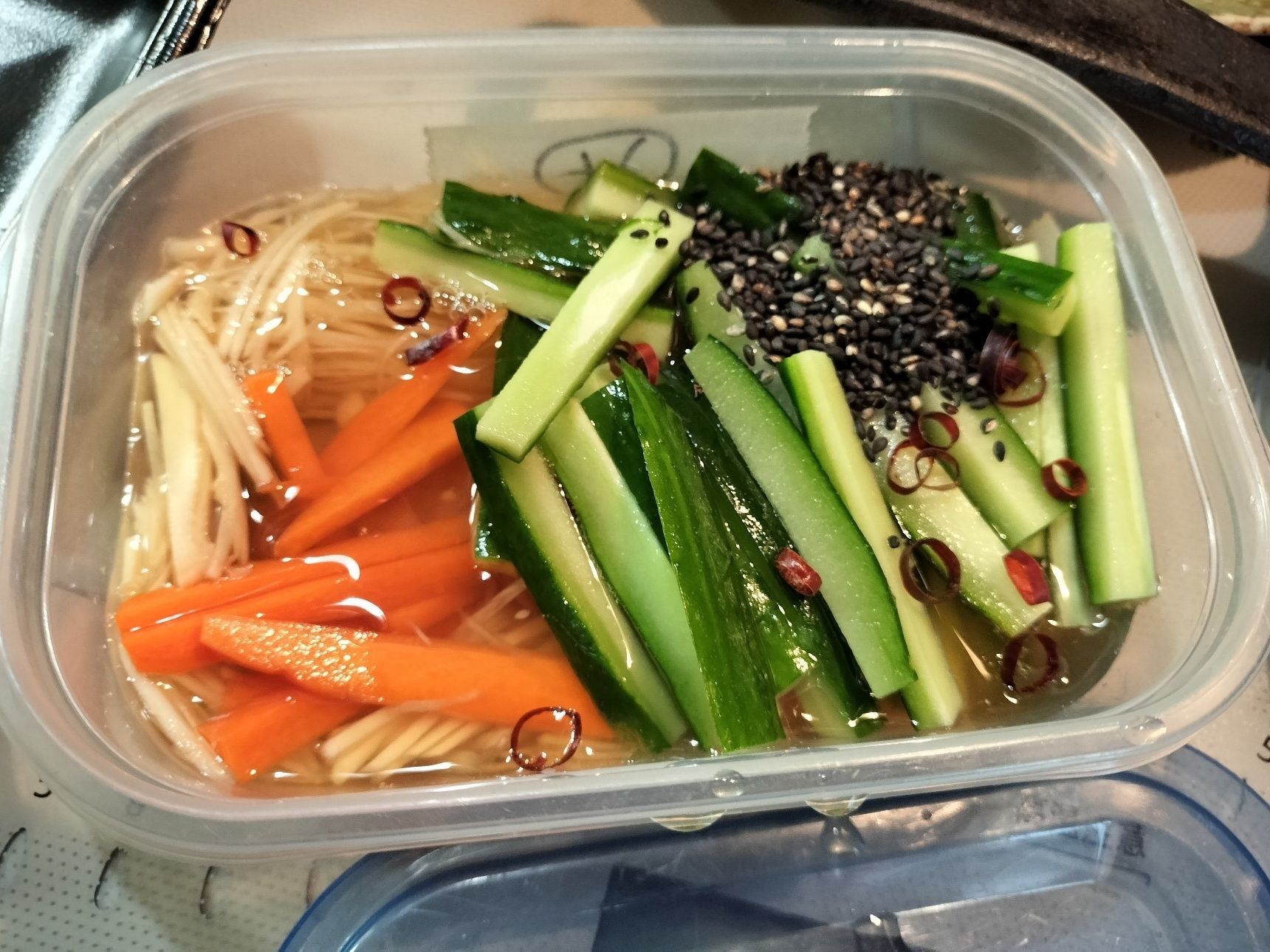 2日目の韓国風ピクルスが余ったので、材料■を加えて、冷蔵庫で1時間ほど漬け込み、和風ピクルス完成!!