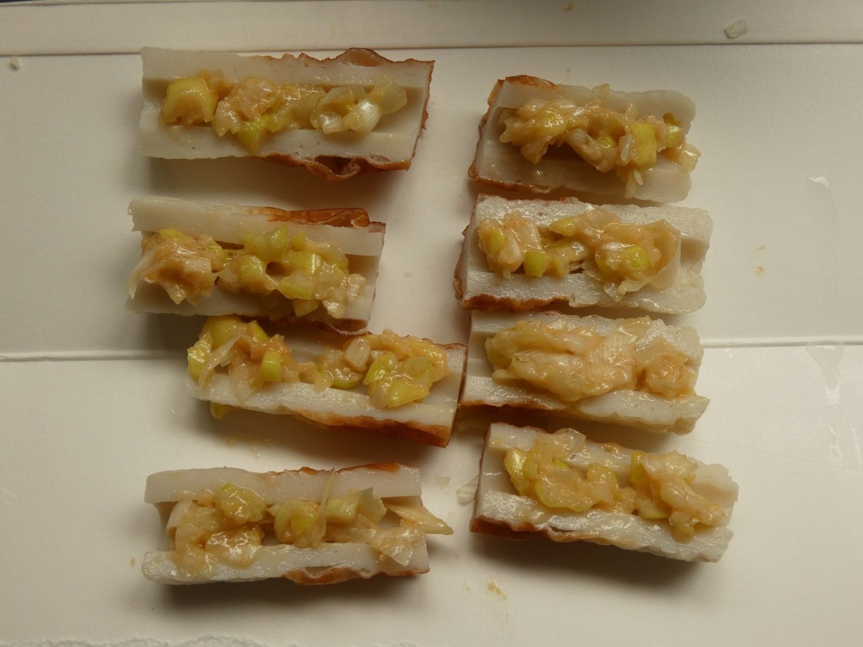 ちくわにネギ味噌を乗せてトースターで焼きます。表面に焼き色がついたら完成。