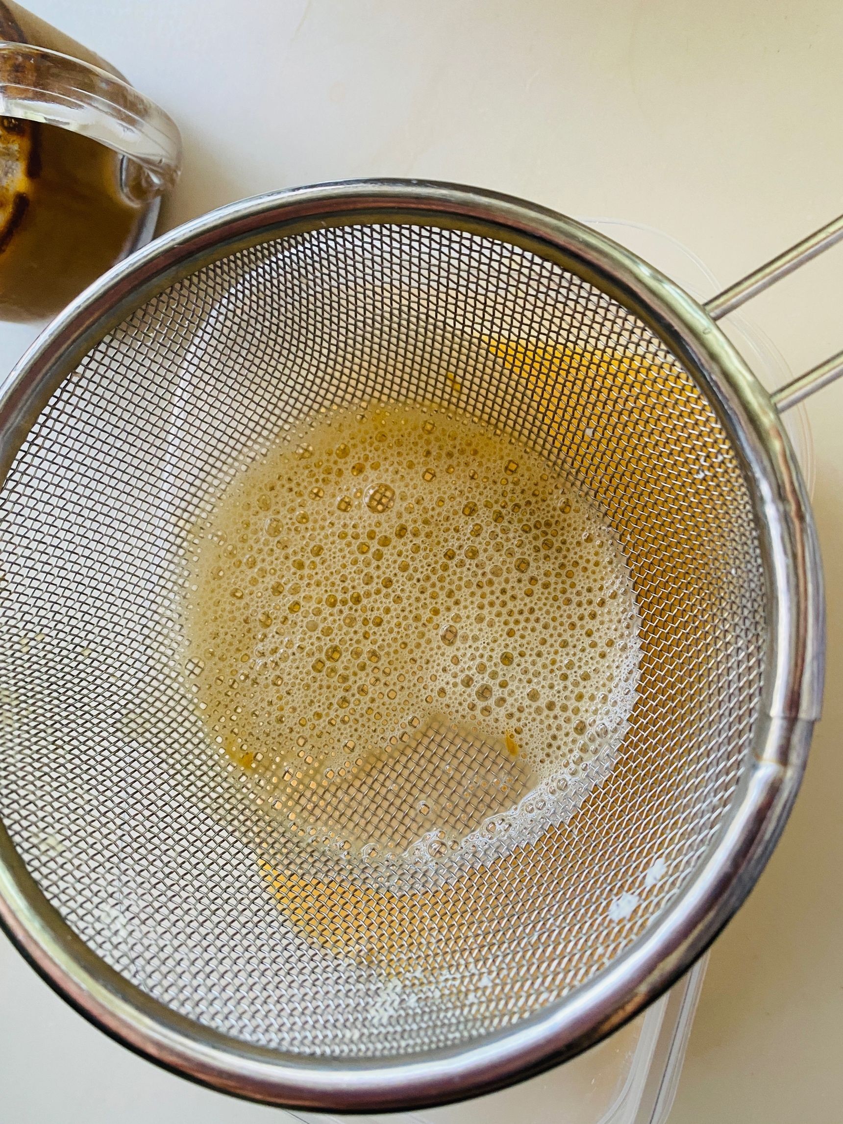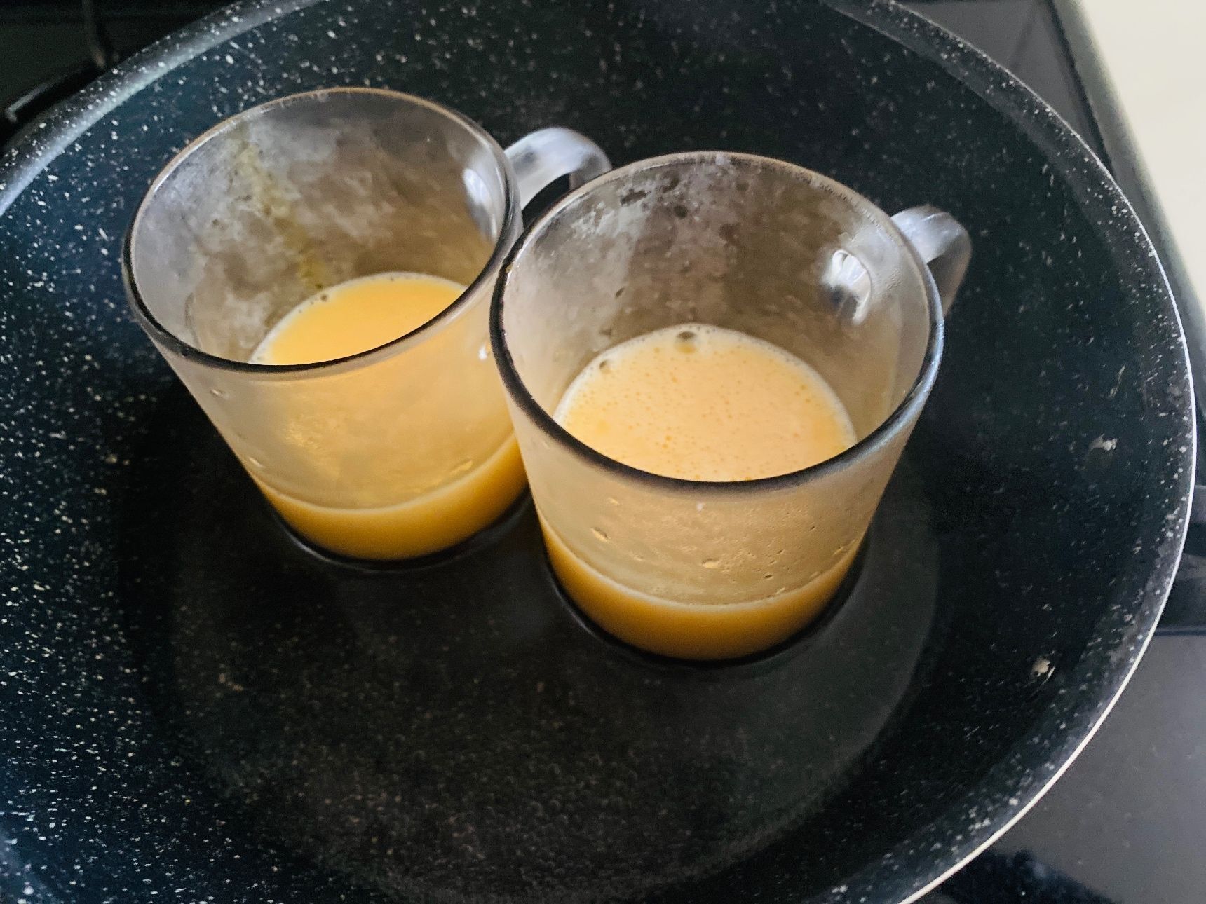 ⑤ 予め耐熱容器に、黒蜜を入れておきます。④を均等に入れます。