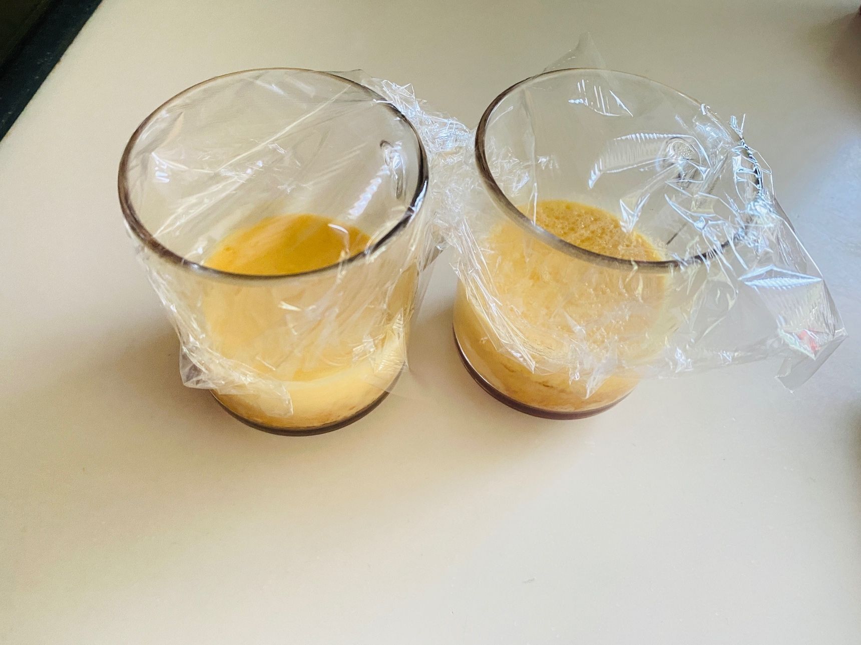 ⑧ ⑦が冷めたらラップで蓋をします。冷蔵庫に入れ一晩冷やします。