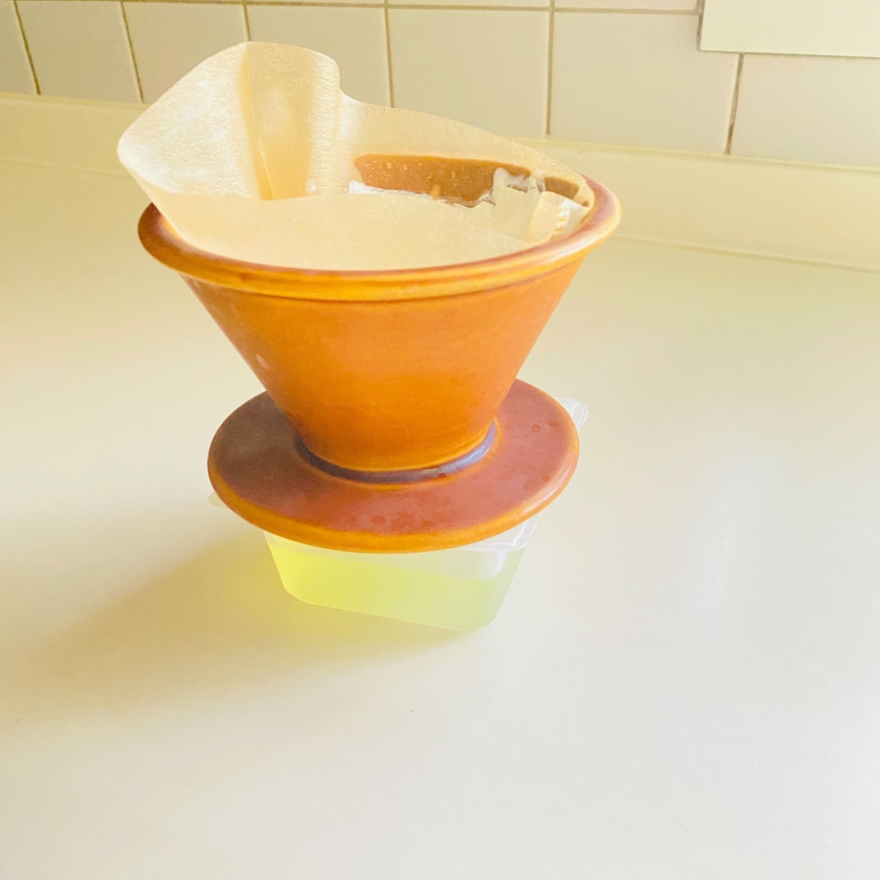① コーヒードリッパーにペーパーフィルターを入れ、プレーンヨーグルトを入れます。