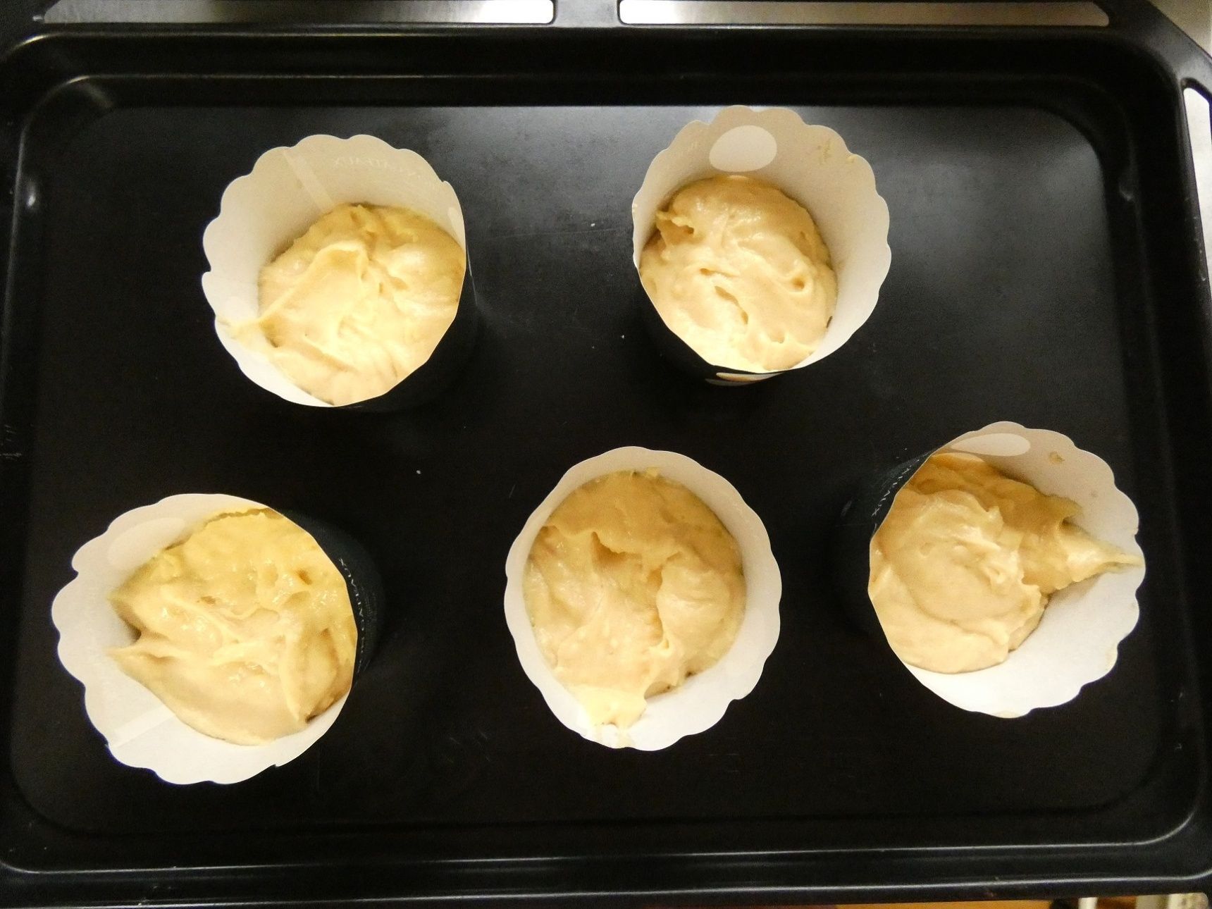 さつまいも混ぜ合わせたとき、生地が少し硬い場合は牛乳を足して調節して下さい。カップの大きさやオーブンによって、焼き時間を調節して下さい。
