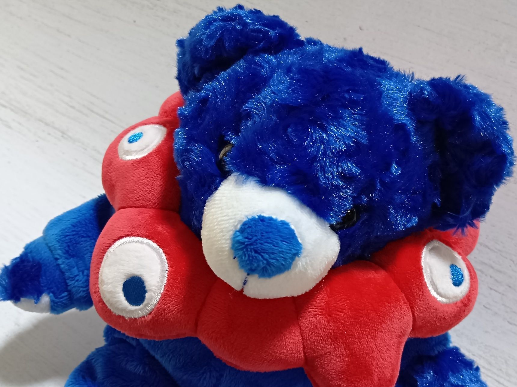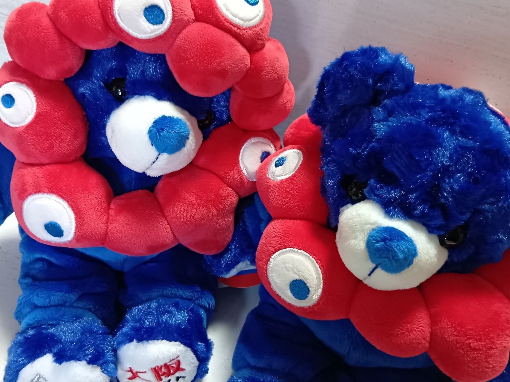 ミャクミャクの着ぐるみを着ているご当地ベアさんなんですよ!