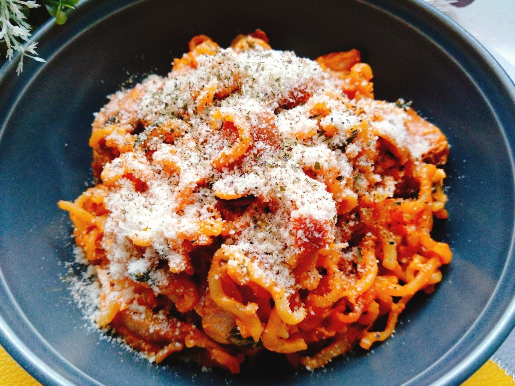 3.ダシダで味を調え、盛り付ける。粉チーズとパセリ、ブラックペッパーをふって完成