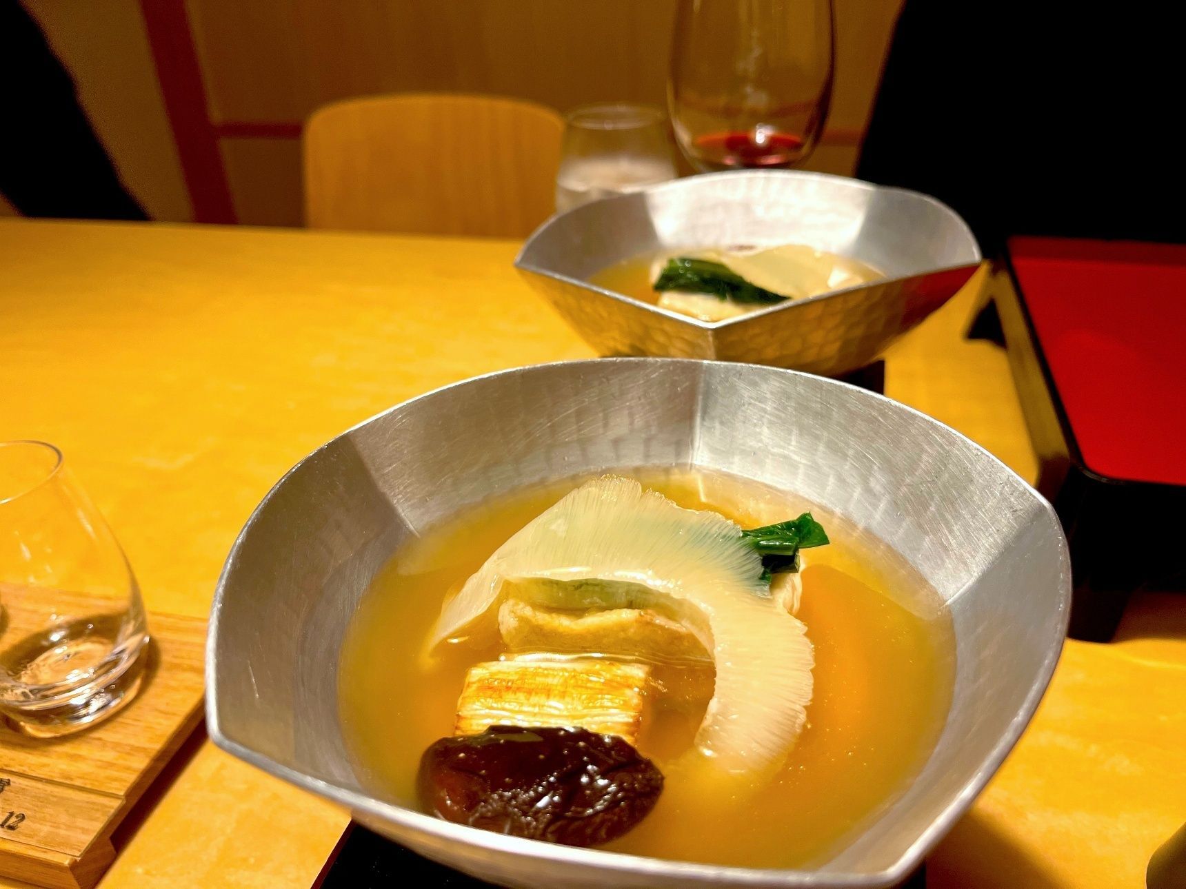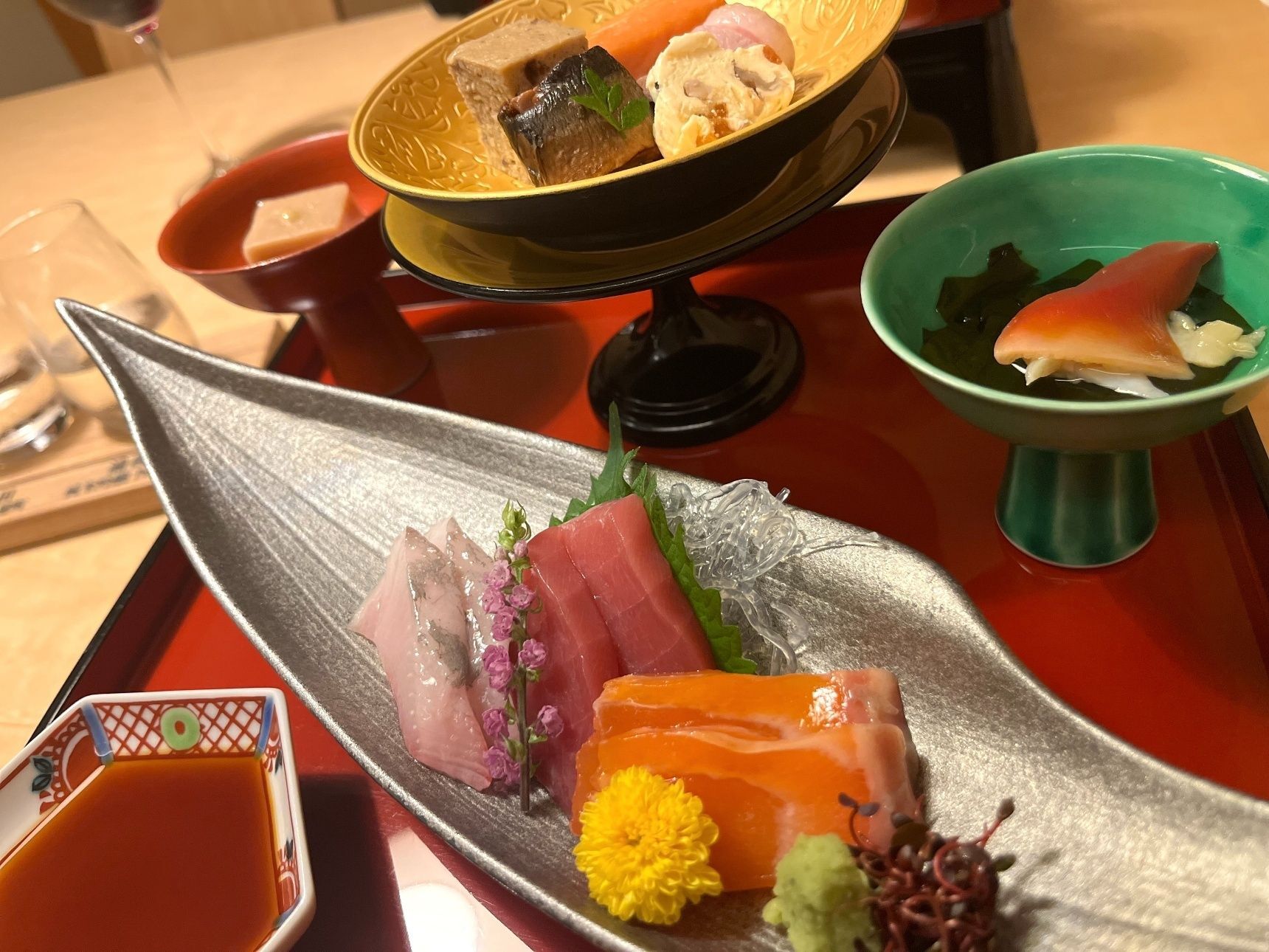 界ブランド名物の宝楽盛り(八寸とお造り、酢の物を一度に盛り合わせたもの)では新鮮なお刺身、メインのお鍋ではふかひれ利休鍋と、どちらもバランスよく味わえて食後の満足感はかなり高め。
